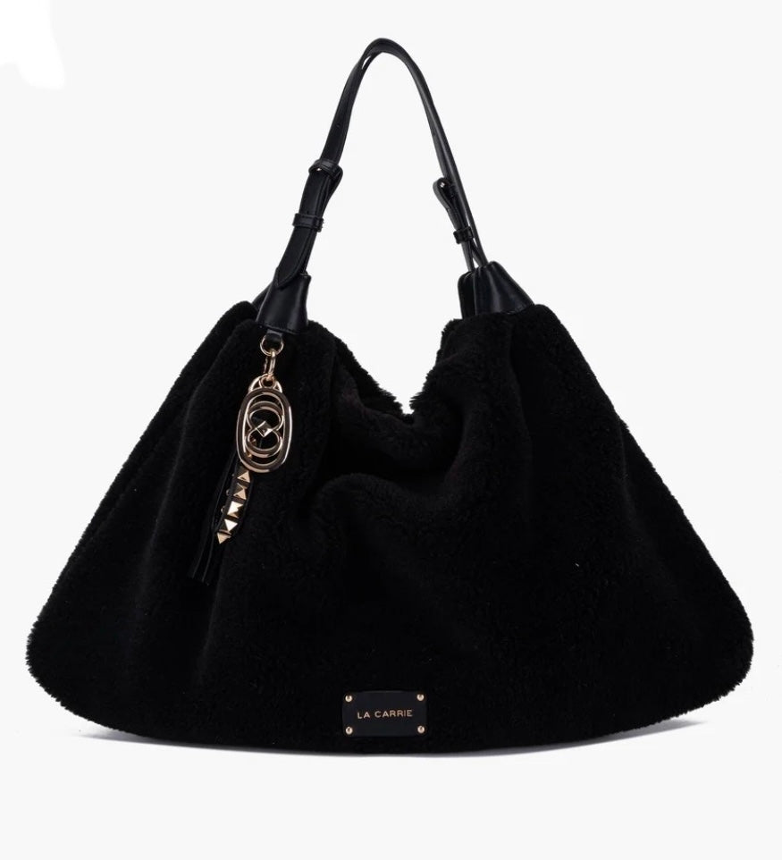 Borsa shopping in pelo sintetico con doppi manici e charms