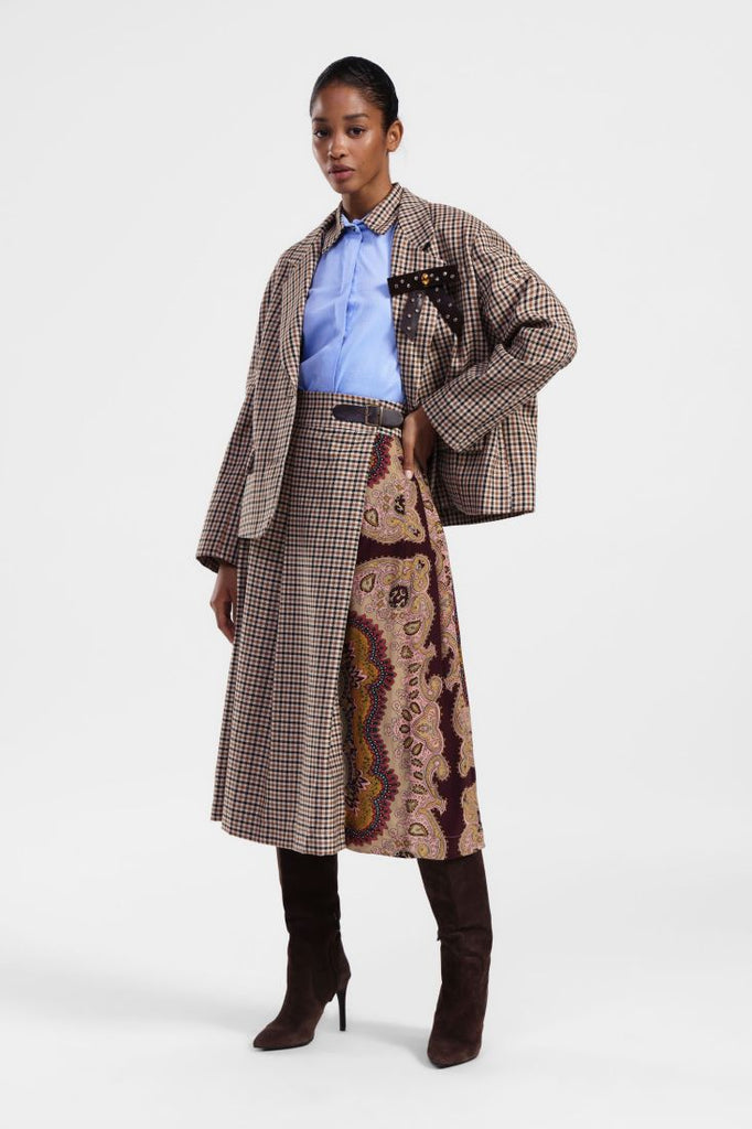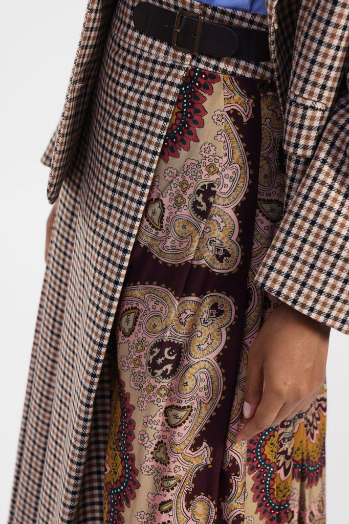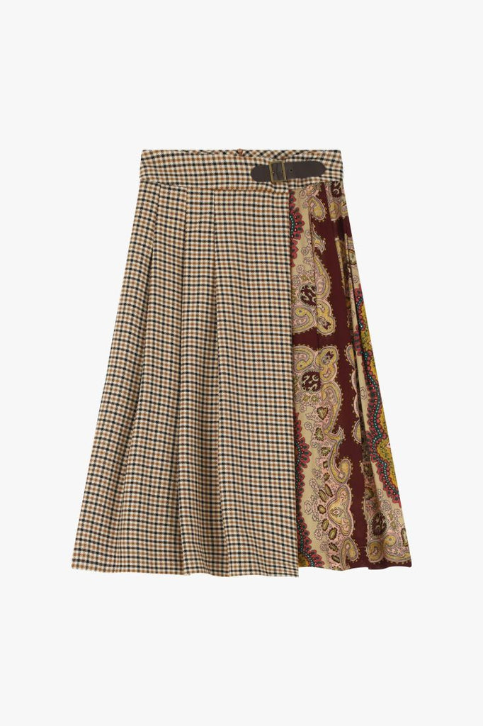Gonna midi in fantasie a contrasto con pieghe e fascia in vita , chiusura con cinturino in ecopelle perfetta per rendere unico ogni tuo look di giorno ma anche di sera